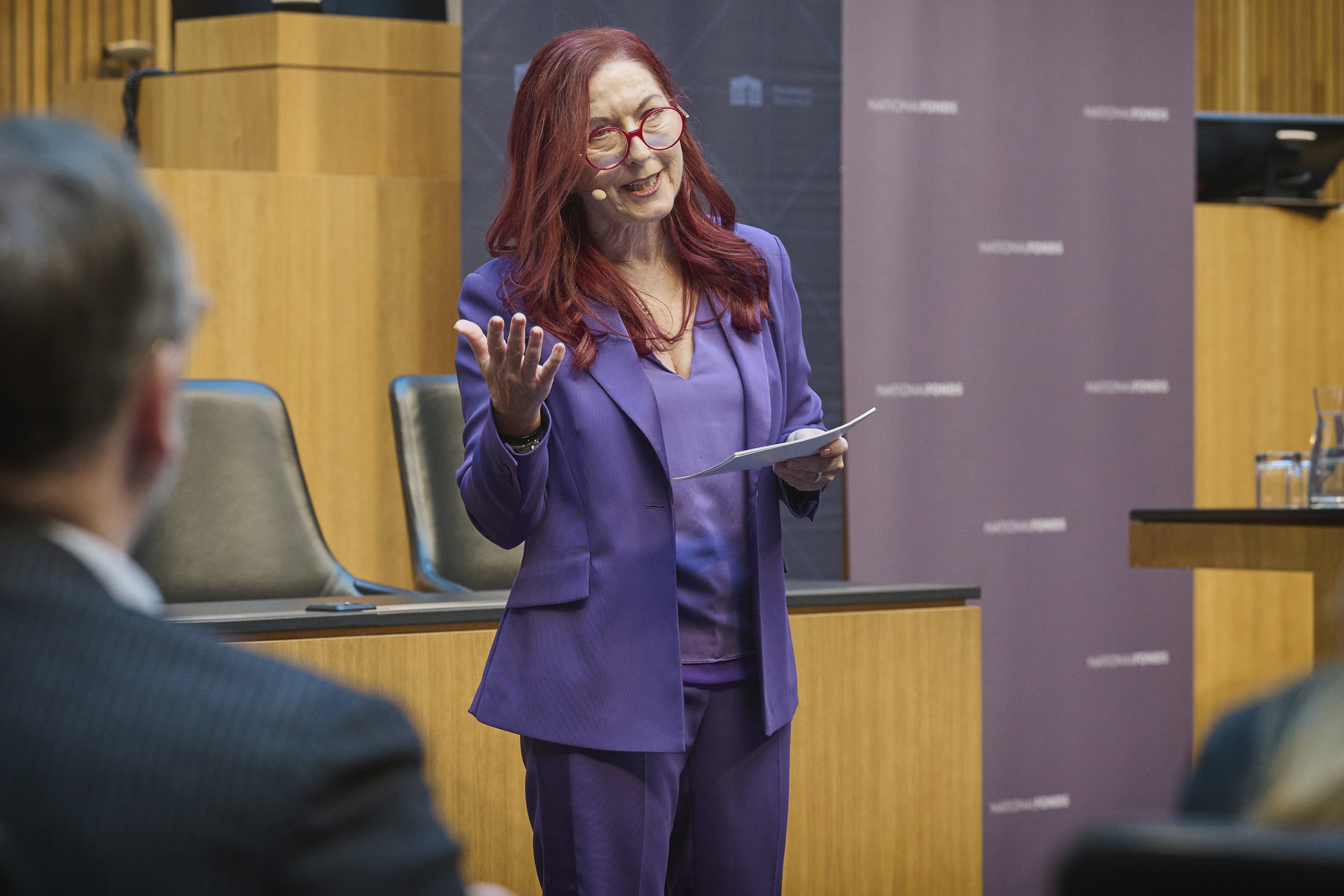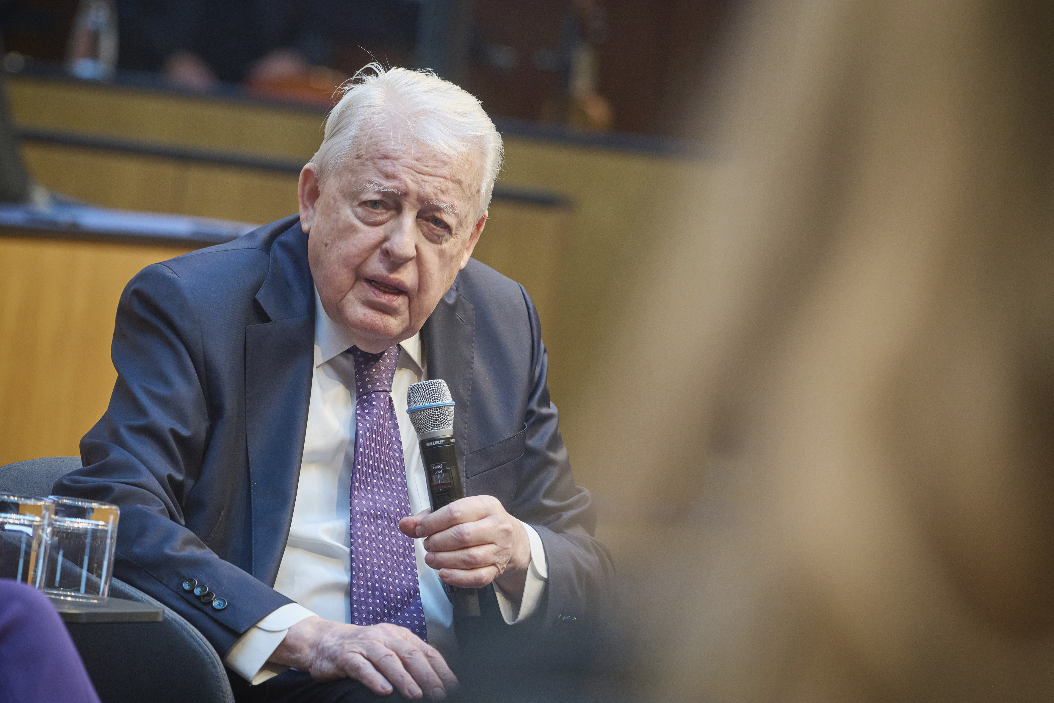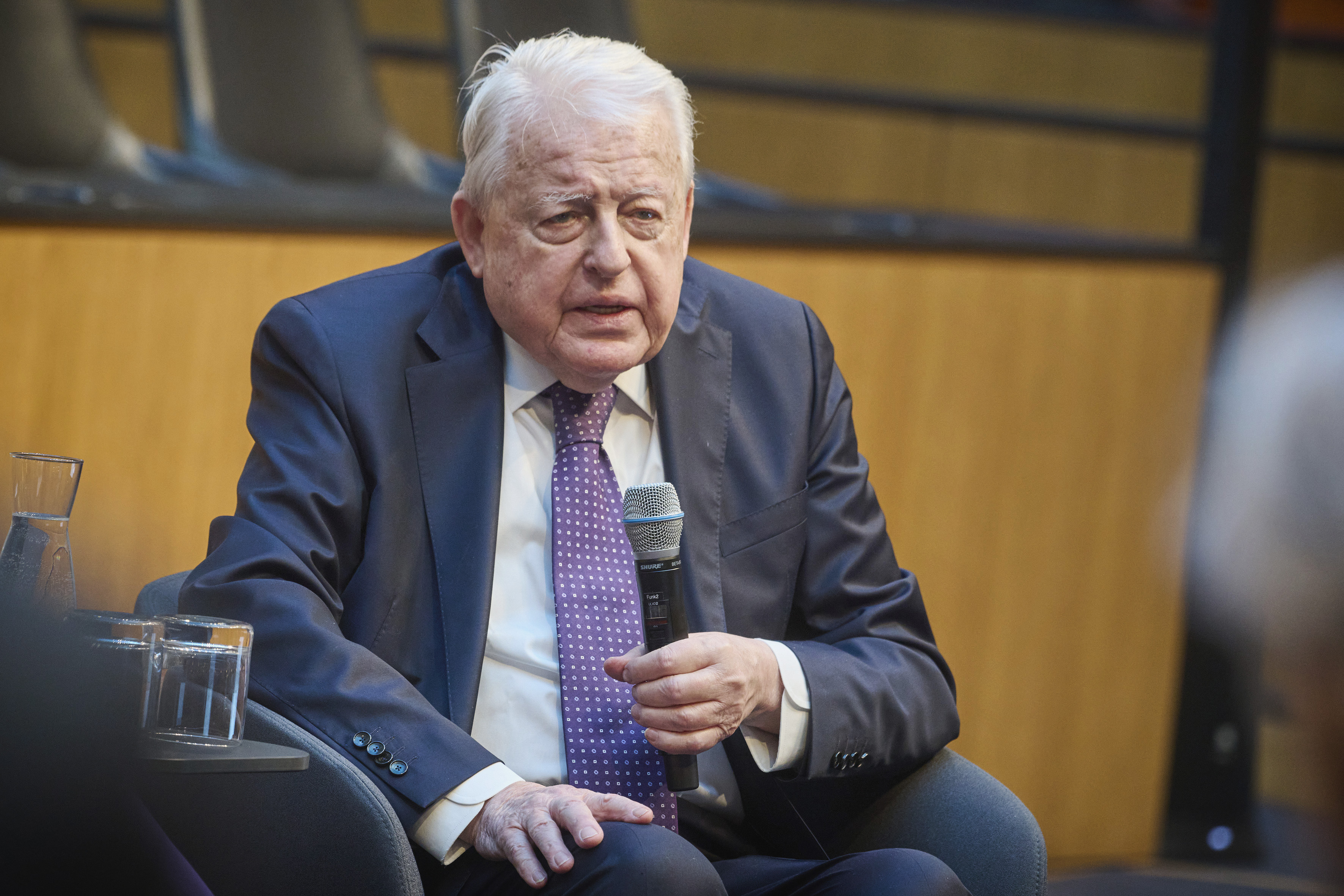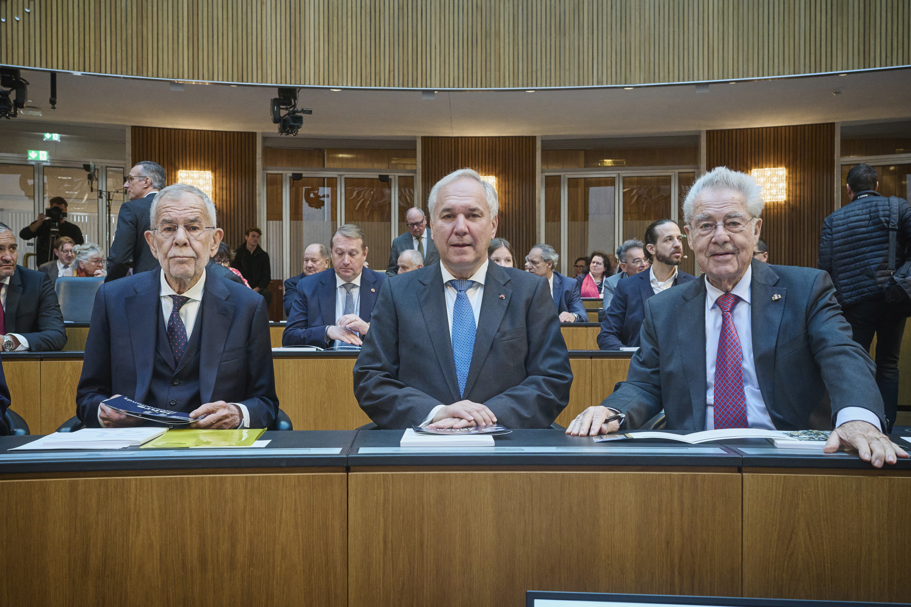 In conversation. From left: Former President of the National Council Andreas Khol, Managing Director of the Austrian National Fund for Victims of National Socialism Hannah Lessing, former Federal Chancellor Franz Vranitzky. View towards the event participants.