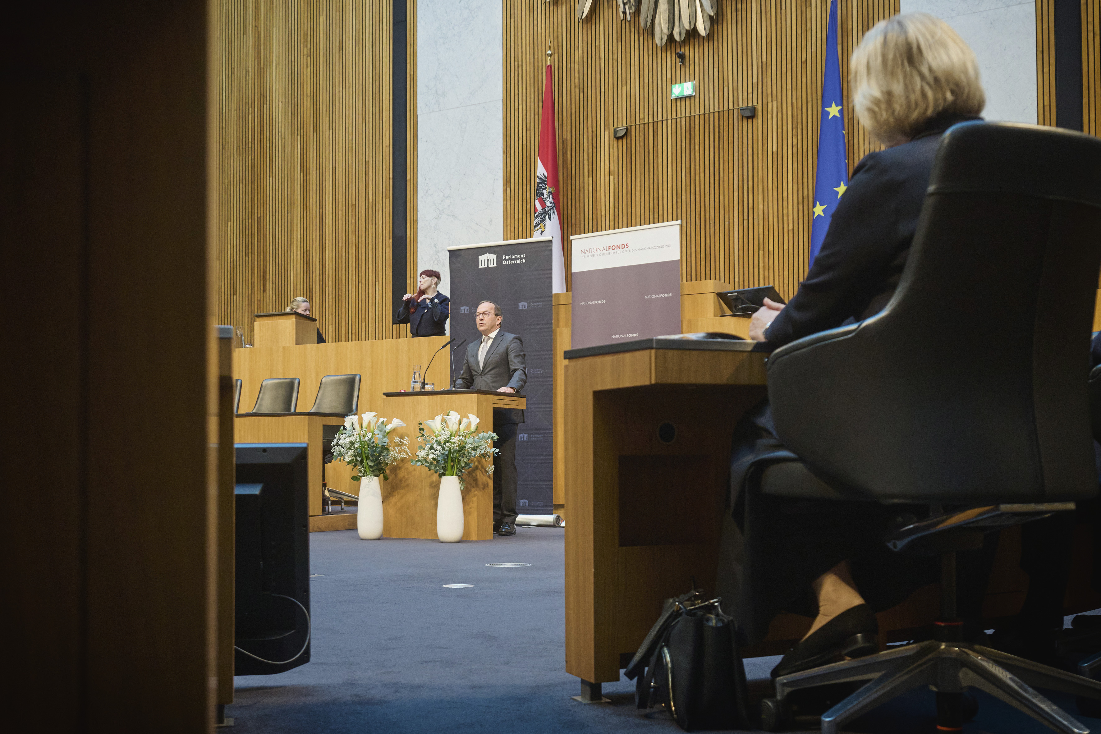 “Sometimes, a single step is enough to make history. A step that has not only legal significance, but above all moral significance.” This was the message conveyed by Second National Council President Peter Haubner in his opening remarks regarding the law establishing the National Fund. Holding the ceremony at the parliament was deeply symbolic. ‘That is precisely why we must be highly sensitive to the type of events we hold here and the signals we send out,’ he warned. The ceremony highlighted that, with the establishment of the National Fund, Austria formally recognised that the suffering caused by the Nazi regime must never be forgotten, trivialised, suppressed or relativised.