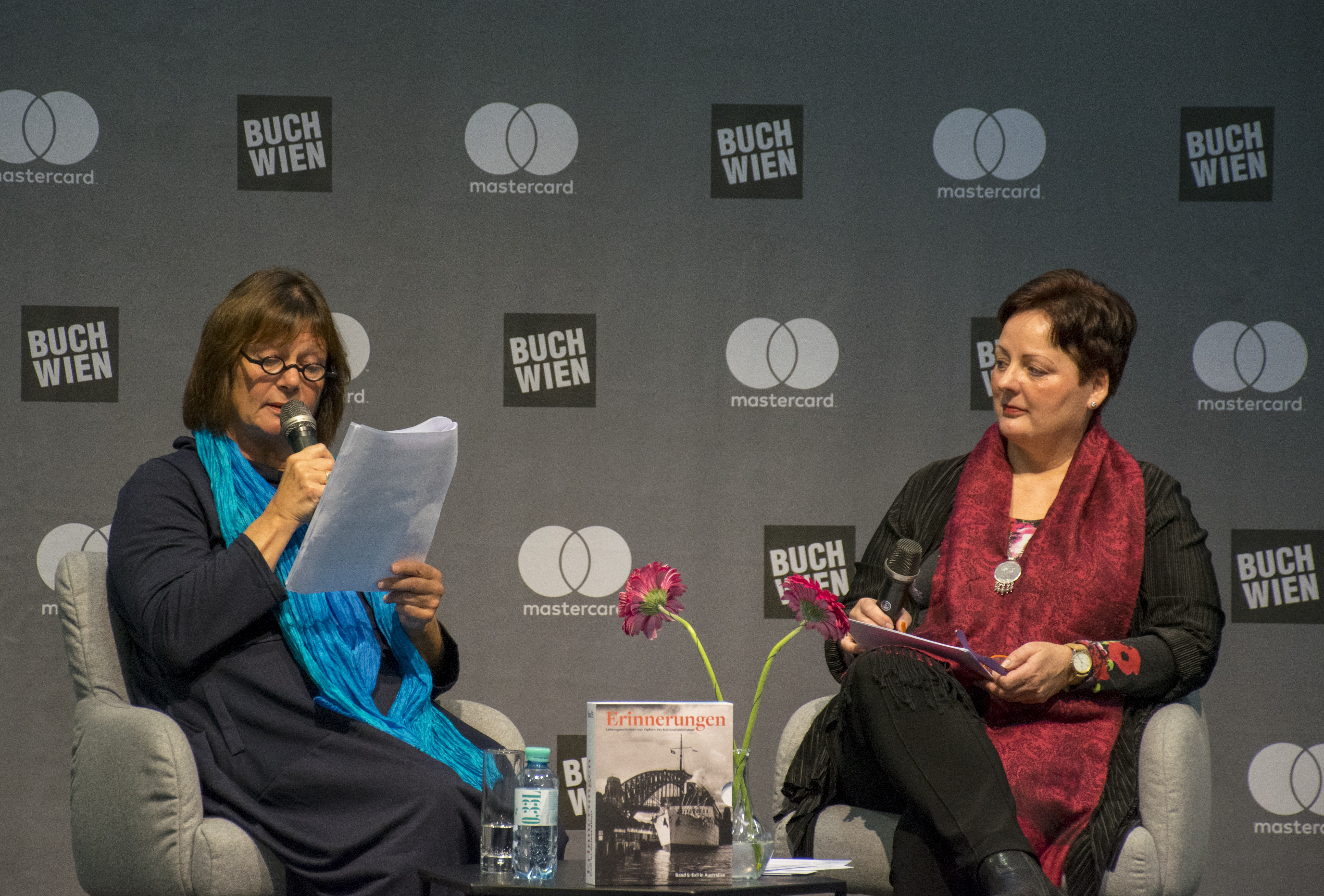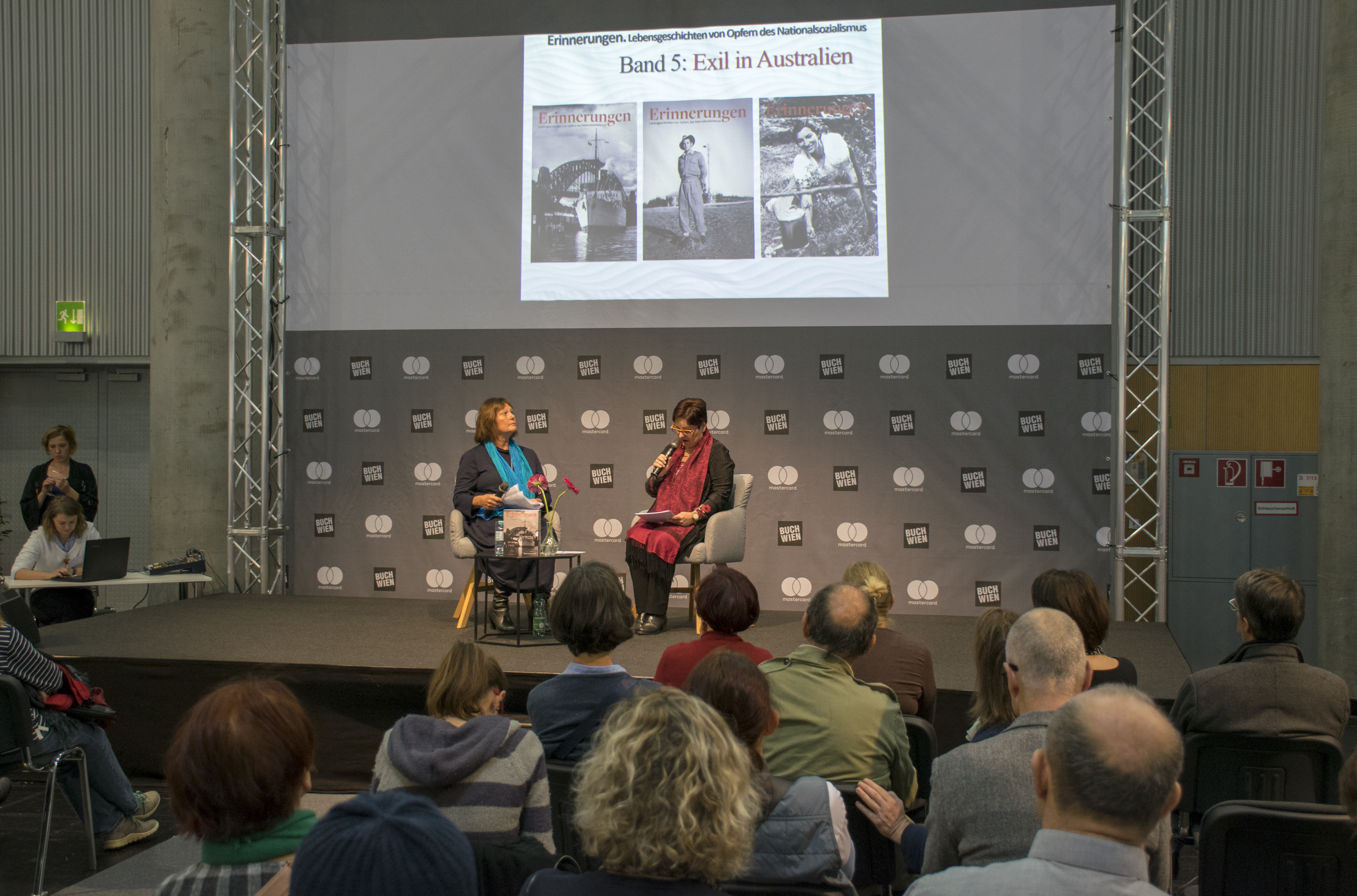 Am Sontag, den 11. November, führte Dr.in Renate S. Meissner, stv. Generalsekretärin und wissenschaftliche Leiterin des Nationalfonds sowie Herausgeberin der Buchreihe, ein halbstündiges Gespräch mit Mag.a Susanne Altschul. Susanne Altschul ist die Tochter von Heinz Altschul, dessen Lebensgeschichte als eine von 21 Lebens- und Fluchtgeschichten österreichischer NS-Überlebender im fünften Band der Buchreihe „Erinnerungen“ abgedruckt ist. Renate S. Meissner und Susanne Altschul sprachen über die Ereignisse in Wien 1938, über Flucht und Rückkehr sowie über die Wichtigkeit, Erinnerungen zu bewahren. Auch interessante Passagen aus dem Buch „Exil in Australien“ wurden vorgelesen.